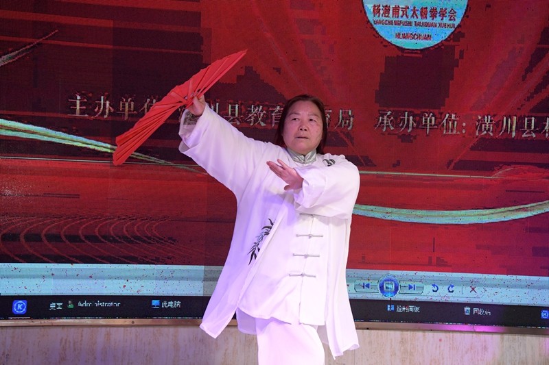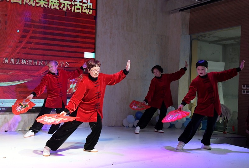 在热烈的掌声中,县人大常委会原主任胡国平郑重宣布:潢川县社区教育品牌项目成果展示活动正式开始。来自各辅导站的拳友们依次登台,献上舞蹈、杨式太极拳精编18式、36式太极扇、太极推手、太极功夫扇等22个精品节目。大家身姿舒展、刚柔相济、动静相宜,尽显太极独特神韵与“光州太极”品牌建设成果,充分展现了潢川太极爱好者健康向上、朝气蓬勃的精神风采,现场气氛热烈、喝彩不断。