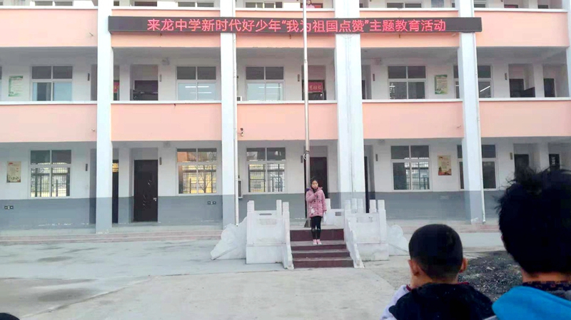 潢川网11月21日讯(陶千)为认真贯彻落实上级文件精神,培养实现中华民族伟大复兴中国梦的年青一代。11月20日上午,潢川县来龙中学举行主题升旗仪式,开展新时代好少年“我为祖国点赞”主题教育活动。