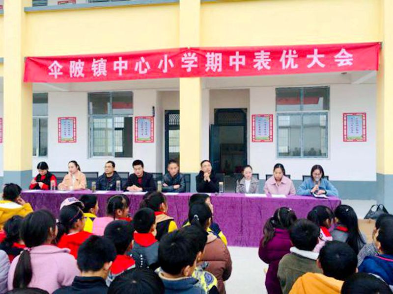 潢川网11月29日讯 2018年11月29日下午,潢川县伞陂镇中心小学为了表彰先进,进一步激发全校师生的学习热情和干事激情,在校园内新教学楼前隆重举行了期中表优大会,全校师生积极参与并邀请部分优秀学生代表家长共同参与。