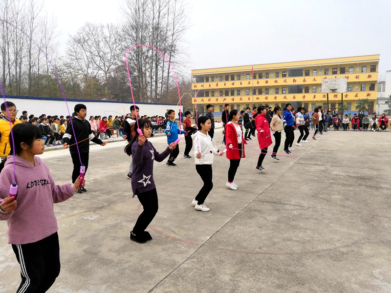 潢川网11月30日讯(张磊)顽强拼搏显身手,绳绳舞动展英姿。为了进一步开展阳光体育运动,丰富校园文化生活,11月29日下午,潢川县官渡中学举行了“健康快乐一起来”师生跳绳比赛。