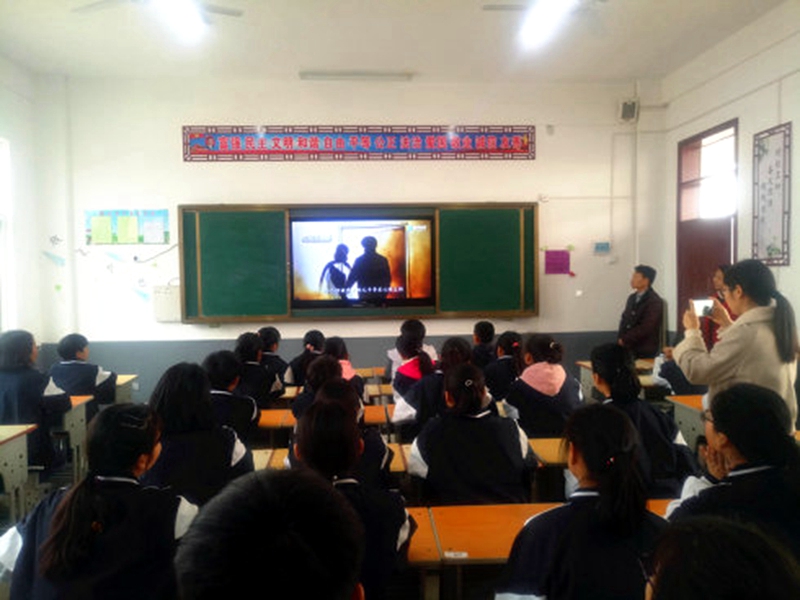 在揭晓仪式上,学生代表做了主题为《禁毒防艾 珍爱生命》的主题演讲。学校还组织学生们观看了防艾公益宣传片。尹林校长在讲话中说,学校是禁毒防艾宣传教育的重要窗口,作为教育工作者,我们有责任也有义务担负起时代和社会赋予我们的责任,让我们携手来共筑远离毒品、预防艾滋的强大防线,也希望通过此次活动呼吁更多的学校、机构、组织和部门关注青少年性教育和艾滋病防治工作,共同关注青少年的健康成长。