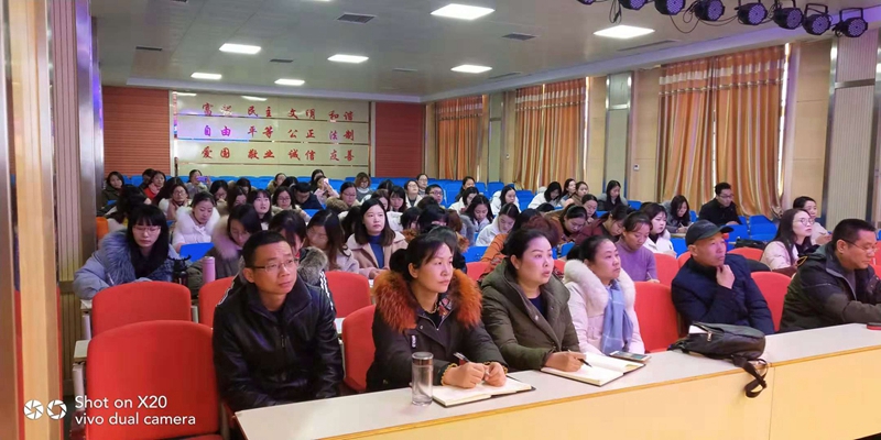 潢川网12月8日讯(张桂兵 李霞)大雪节气,寒潮来袭,室外温度已经降到冰点,但这丝毫阻挡不了老师们对教育事业的热爱。12月7日,潢川县第五中心教研组教研活动在逸夫小学报告厅隆重举行。潢川一小、隆古中心校,小吕店中心校、仁和中心校、黄湖小学的领导及教师近百人参加了此次活动,县教研室英语教研员周承忠老师到场主持。