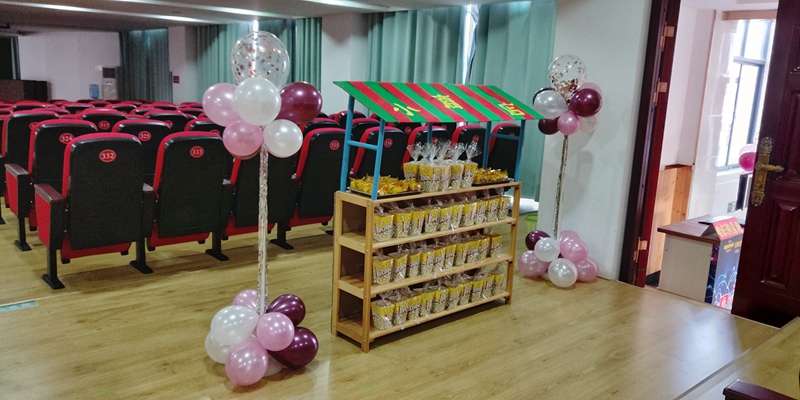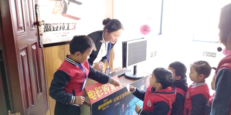 教师们为让孩子们有一次完美的体验,真是忙的不亦乐乎,提前设计电影票,布置好电影院场地,例如每一个座位都贴有跟电影票相对应的标识,进行海报、横幅宣传;检票章、爆米花、零食若干,兑换好零钱,让孩子们自行购票。为满足多数孩子的观影爱好,教师们更是事先精选出《雪怪大冒险》、《寻梦环游记》、《海底总动员》、《疯狂动物城》四部儿童电影供家长和幼儿选择,最后根据统计调查结果,选出了最受孩子们喜爱的《寻梦环游记》作为首播电影。