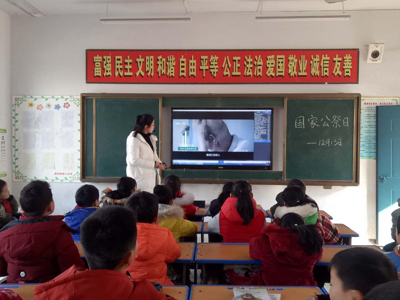 活动中,各个班级,老师们利用教学一体机收看了“国行公祭 祀我国殇|81年,我们从未忘记”宣传片或以文字形式进行讲解。