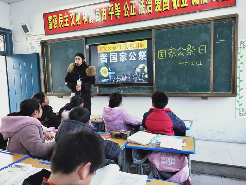 少先大队辅导员王娟老师向学生讲解国家公祭日相关知识