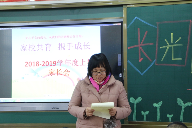 会前,各班精心布置了会场,教室里干净整洁,黑板上写着“欢迎各位家长”的标语。虽然外面天气寒冷,但是家长们一走进教室就感受到了阵阵暖意。