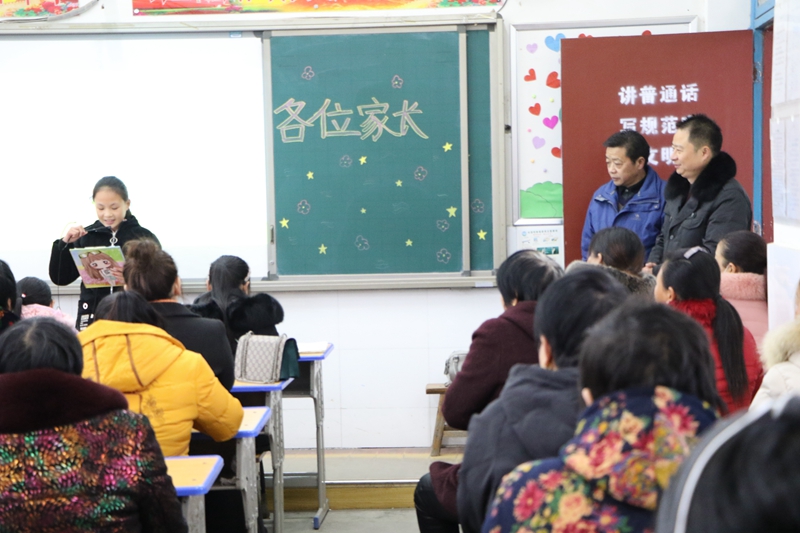 潢川网12月15日讯(苗华燕 张蓬)为了加强学校、教师、家长之间的沟通,培养学生良好的习惯,共同关注学生健康成长,12月15日下午,潢川一小在各班召开了以“家校携手 共铸成长”为主题的家长会,县教体局老干部股股长李全运莅临指导。