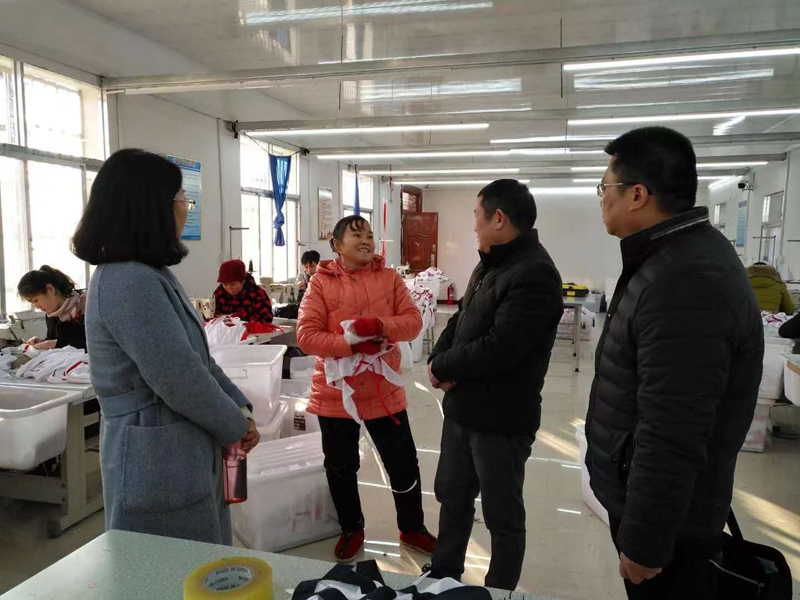潢川网12月7日讯 为全面推进巧媳妇就业工程,助力全县脱贫攻坚工作,12月13日,潢川县妇联、县工信委一行对产业集聚区、桃林铺镇巧媳妇就业基地进行了走访调研。