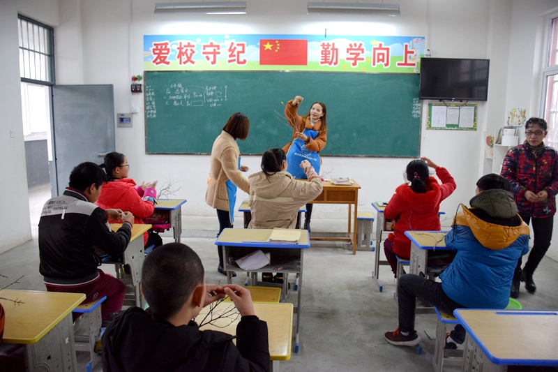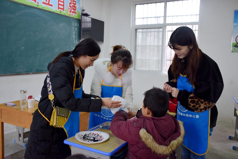 活动伊始,慧雅教师分成五组分别前往各个班级与特殊教育学校的孩子们一起互动并进行手工制作。特殊学校方校长致欢迎词,他代表全校师生感谢为这些特殊的孩子们送来寒冬温暖的各位老师。慧雅园长芦欢欢代表全园教职工对特殊学校领导及各位老师孩子们送去祝福。