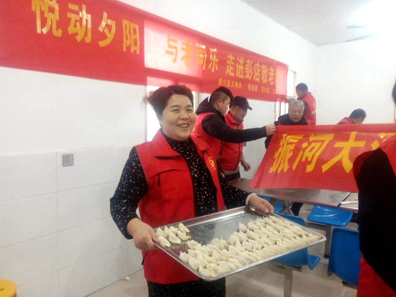志愿者们还共同为老人包饺子,一起度过一个温馨幸福的冬至。潢川县戏协和文艺志愿者们为老人表演了精彩的文艺节目,一首首优美动听的歌曲、一场场精彩的表演,赢得了大家的阵阵掌声。