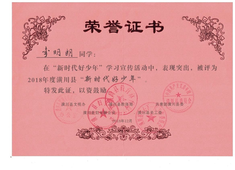 李明朗荣誉证书