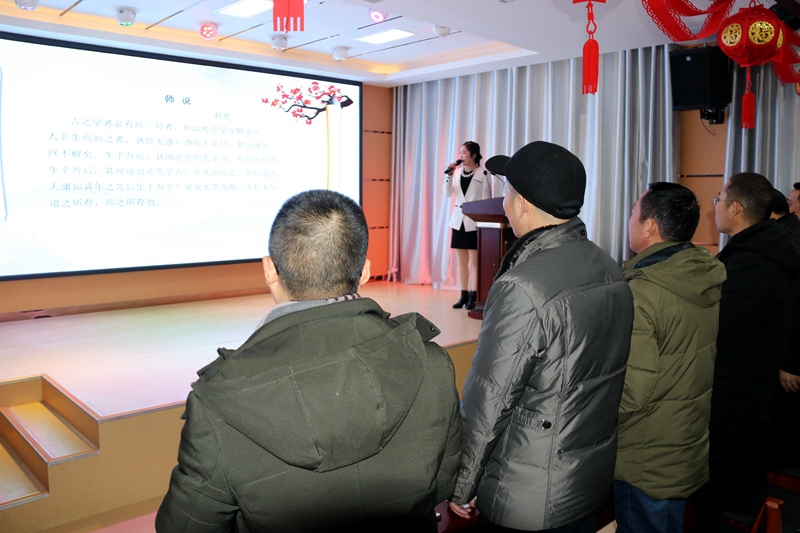 主持人胡汉华带领全体教师齐声诵读《师说》经典名句