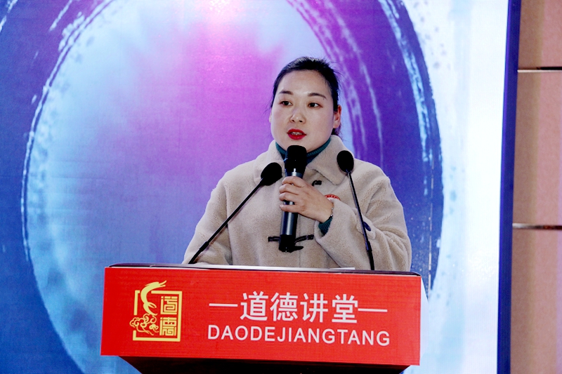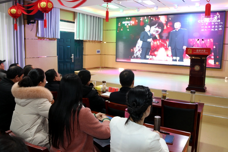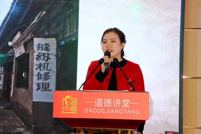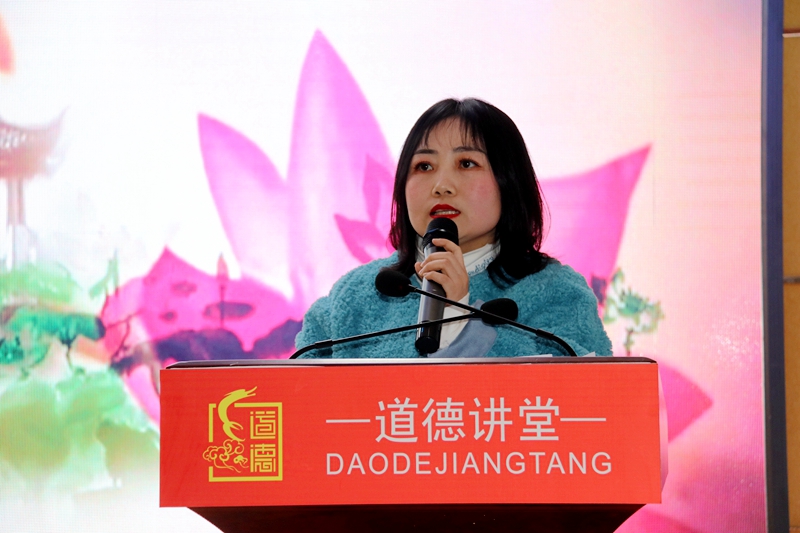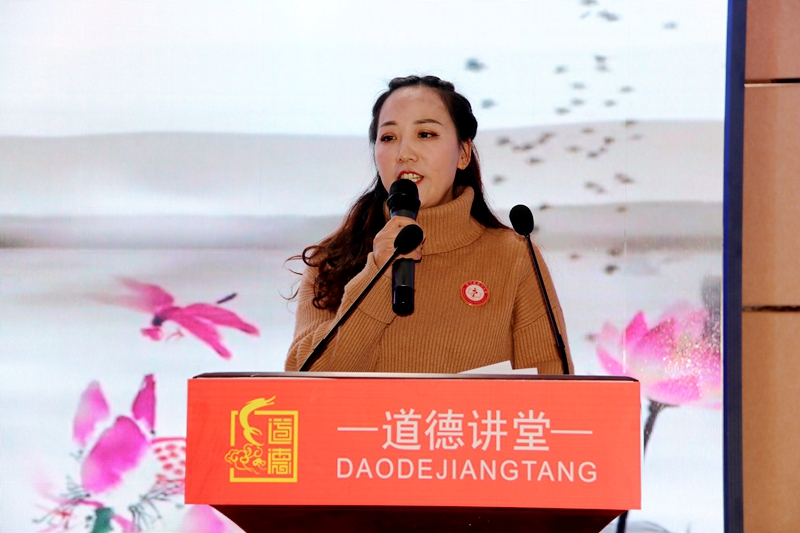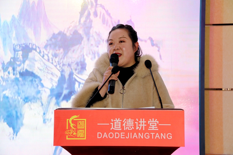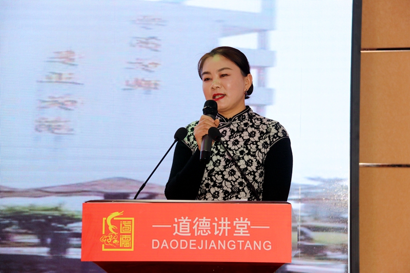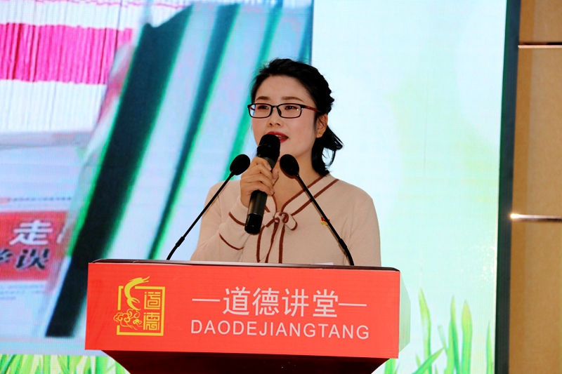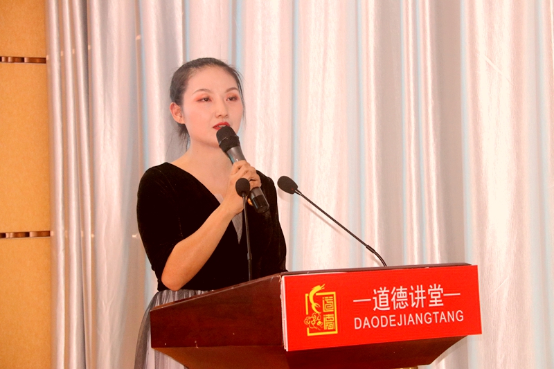 本次道德讲堂由胡汉华老师主持,分为“唱歌曲、诵经典、看短片、讲故事、谈感悟、作承诺、上党课、做点评”八个环节。