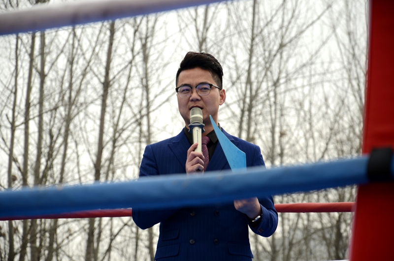 武林风中国勇士、全国散打冠军董文飞、张德政上台讲话