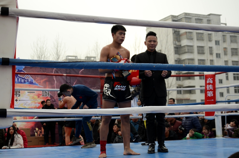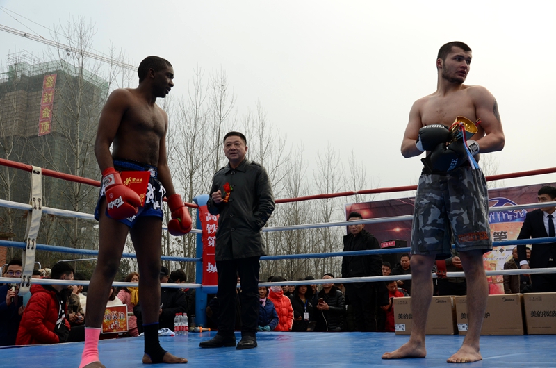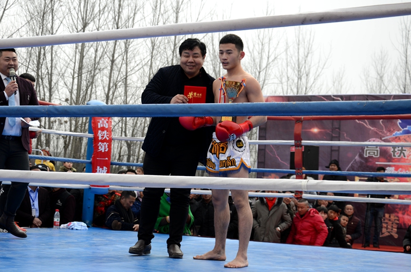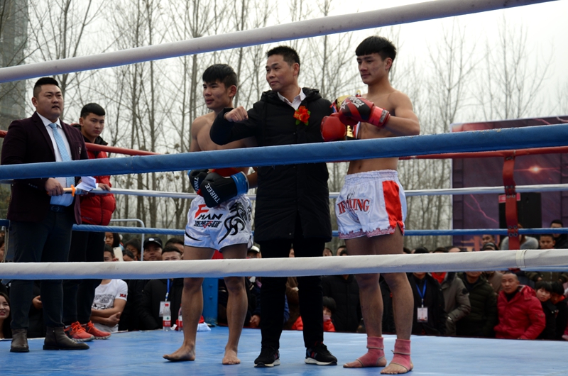 潢川网1月13日讯(姚康明)1月13日(农历腊月初八)下午,由高铁第一城独家冠名,建奇传媒、阳晟传媒联合推广,90印象传媒执行的“高铁第一城·武林风中外搏击争霸赛”潢川站的赛事燃情开擂。县政协副主席、工商联主席李成强,潢川火车站党委书记邓书贵,山川房地产董事长、建奇集团总经理孙建民,河南建奇建设集团有限公司董事长廖建奇,山川房地产总经理郑晓民、副总经理许化祥,以及高铁第一城的老总、嘉宾和准业主们欢聚一堂。