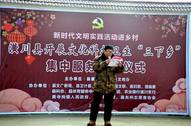 2019年元月13日下午,是农村传统的腊八节,为了全面贯彻落实习近平新时代中国特色社会主义思想和党的十九大精神,县委宣传部、县文明办主办的文化科技卫生“三下乡”启动仪式暨文明实践志愿服务活动进乡村活动在黄寺岗镇桥梁村新时代文明实践广场上举行。县文广新局、县卫计委、县文联、县妇联、团县委、县科协、县体育服务中心、县新华书店、中国农业银行潢川县支行、黄寺岗镇人民政府、桥梁村两委等单位及爱心志愿者等150多人参加了活动。