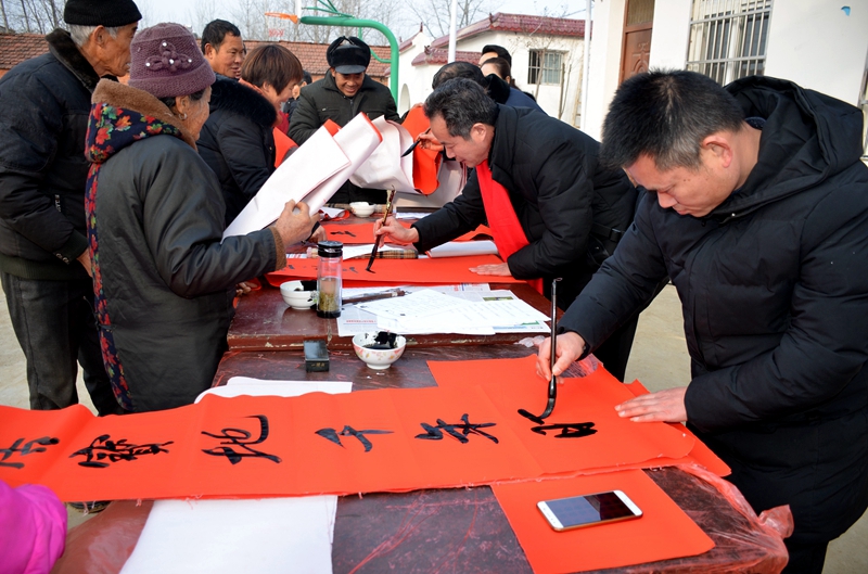 在现场活动中,光州志愿者协会还精心为村民熬制了营养丰富的八宝粥和大白馍,县志愿者联合会志愿者还为广大的村民送去了近1000件新棉衣,县文联还组织了余保洲等6名著名的书法家为广大村民挥豪书写了100多幅春联。
