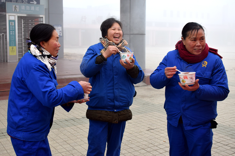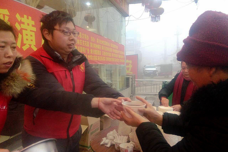 凌晨五点半,顶着刺骨的寒风,潢川光州志愿者协会的志愿者们在本次活动赞助商家“杨记私房菜”集合完毕,开启此次活动的序幕。志愿者们分工明确,认真淘米,细心熬粥,将中国传统的节日文化融入到浓香的腊八粥里。杨玉清与志愿者们把熬制好的热粥热情地送到摆摊卖菜及路过的群众手中, 并给广大群众细致地宣扬腊八节的传统习俗。一言一语间,温情片片,成了这个腊八节早晨潢川县城最美的景色。不到两个小时,7个爱心供粥点的腊八粥就已全部赠完。