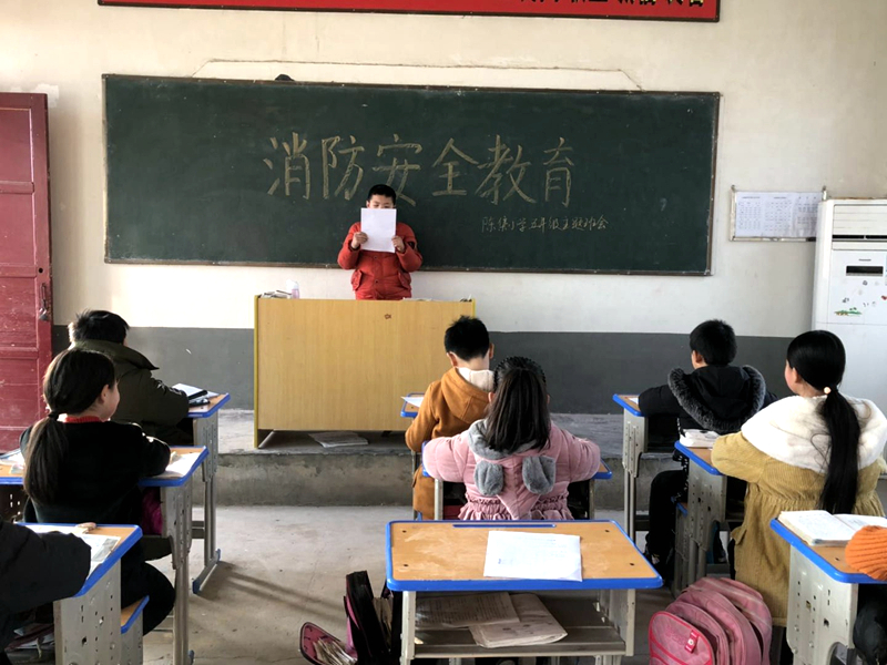 潢川网1月22日讯(刘露萍)为认真贯彻落实“全国中小学校消防安全宣传教育工作推进会”会议精神,深入推进冬春季火灾防控,预防冬季中小学校火灾事故,切实提高中小学生安全防护意识和自救技能,近日,潢川县伞陂镇陈集小学开展了一系列的冬季消防安全宣传教育活动。