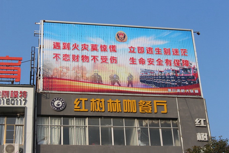 此次设置的三面翻大型宣传牌长12米,高6米,常年挂置消防公益广告,宣传内容以防灭火常识、消防公益宣传为主题,突出视觉效果,位置醒目,主题鲜明,吸引了大批市民驻足观看,宣传效果极强,时时提醒广大群众加强防火意识,为潢川增添了一抹亮丽色彩,成为潢川一道独特风景线。
