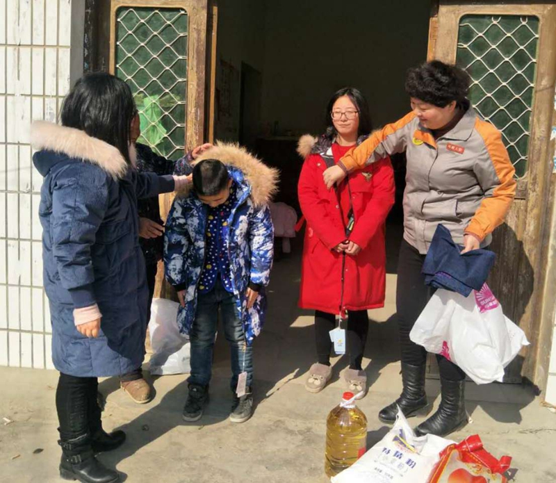 活动结束后,潢川县人防办主任李东梅与华夏地产经理刁娟、村支部书记唐军、第一书记赵明辉等分头行动,带着米面油以及棉衣等生活用品慰问了村里的困难群众共计66户。