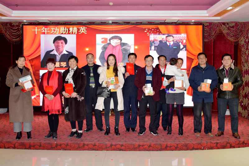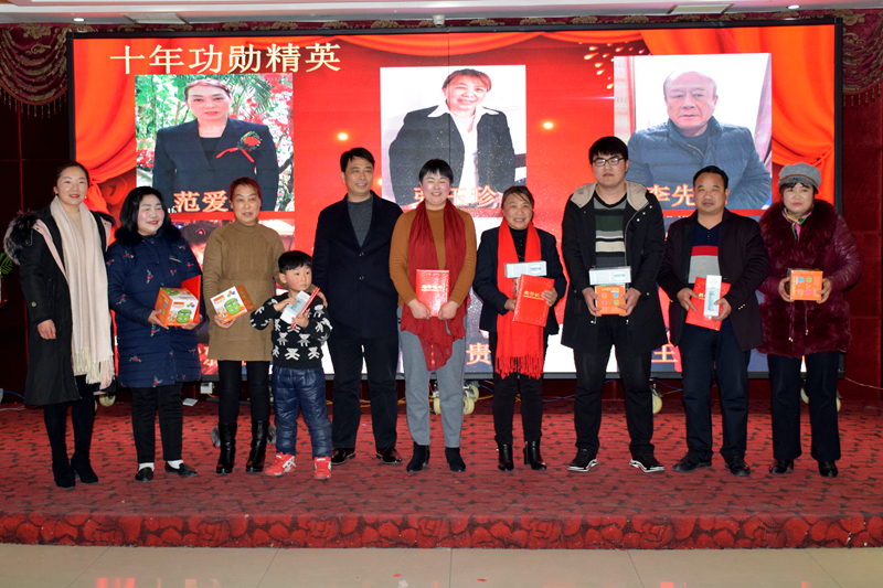 年会上还对本部门18位“十年功勋”获得者、10位“无私奉献奖”获得者进行了表彰,公司领导为他们颁发了证书及奖品。