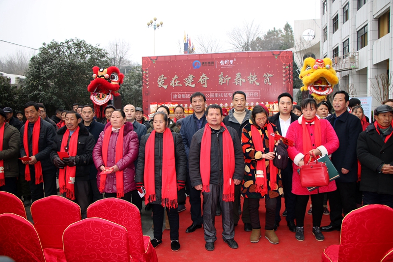 潢川网1月29日讯(蔡冯阳)又是一年佳节到,岁寒情暖迎春来。在2019年新春佳节来临之际,1月28日,河南建奇集团邀请了近百名贫困户来到建奇·公园里,为他们送上新春慰问品。潢川县政协副主席、工商联主席李成强,县经济开发区总工会主席谢正文,谈店乡党委书记陈红,伞陂寺镇党委书记陈继伟,河南建奇集团董事长廖建奇、理事长廖全生、总经理孙建民等领导出席本次活动。