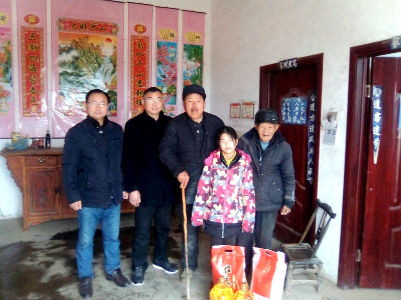 潢川县魏岗乡中心校春节前到彭寨村送温暖看望慰问五保户