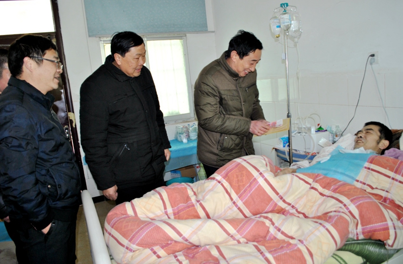 冯长运一行第一站慰问天桥小学教师童庆均老师,童庆均老师一年来一直躺在医院病床上,看到中心校领导的到来,他眼角冒出几滴干涩的泪水,说不出话,从他的眼神中明显看出,对组织关怀的感激和对生存的渴望。冯长运校长鼓励童老师说:积极配合医生治疗,树立信心,战胜病魔,祝愿你早日康复;接着,走访慰问留守在李营空心学校的退休教师纪真玉、走访看望第一小学常年有病仍坚守在教学一线的梁敏老师和妻子瘫痪从没有耽误学生一节课的秦棚小学高福全老师。
