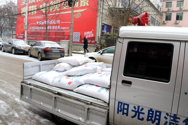 通知就是命令!当晚,环卫集团各作业公司克服春节人车紧张的困难,准时行动,联合在路上撒盐!在跃进路、三环路、环城路、宁西路、迎宾路、京九大道等城区30余条主次干道,大家分头行动,集中撒盐除雪,确保市民安全出行。