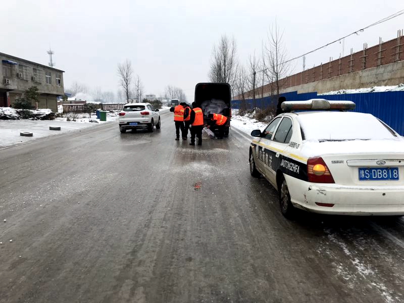 在G312线小潢河苏湾大桥上,县交通运输局党组书记、局长、公路局总支书记马亚军现场巡查除冰工作,及时了解桥面结冰情况,要求养护和路政人员严防死守,密切注意路况……