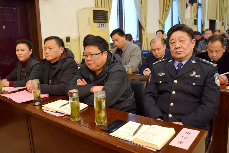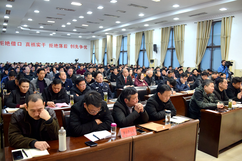 县长兰恩民指出,一要迎难而上,成绩来之不易。过去的2018年,是近些年来任务最重、最为困难的一年。全县上下在习近平新时代中国特色社会主义思想指引下,坚持“四个着力”,打好“四张牌”,全面贯彻“三结合”、“三起来”要求,振奋精神,咬紧牙关,爬坡过坎,滚石上山。虽然形势很艰难,但我们取得的成绩很喜人;虽然干得很辛苦,但我们收获的喜悦很甜蜜,面对脱贫攻坚、环保攻坚、重大风险防控攻坚的艰巨任务,我们把责任扛在肩上,把困难踩在脚下,一仗仗打,一关关过,书写了克难攻坚的豪迈篇章,补齐了制约发展的瓶颈短板。二要突出重点,紧盯发展目标。要清醒认识到,在经济下行压力下,中央密集出台优惠政策,对基层的支持力度前所未有,只要全县上下齐心协力,把劲头鼓起来,把士气扬起来,就一定能实现新突破,谱写新篇章,2019年是新中国建立70周年,是全面建成小康社会关键之年,做好全年工作,必须贯彻中央和省委、市委全会精神,紧紧围绕统筹推进“五位一体”总体布局,协调推进“四个全面”战略布局,牢固树立创新、协调、绿色、开放、共享新发展理念,贯彻“巩固、增强、提升、创新”八字方针,坚持高质量发展不动摇,坚持稳中求进工作总基调,打好三大攻坚战,抓好实体经济,增进民生福祉。三要务实担当,锤炼过硬作风。全县上下要坚定信心、真抓实干,以市委、市政府开展的“干部作风提升年”活动为抓手,以政治意识锤炼过硬作风,以三大攻坚检验过硬作风,以加快发展彰显过硬作风,以勤政廉政保障过硬作风,主动担责担难担险,以作风大转变、大提升来狠抓工作落实,新一年要有新作为,让我们高举习近平新时代中国特色社会主义思想伟大旗帜,以饱满的工作激情,勇于担当,奋发有为,攻坚克难,以党的建设高质量推动经济发展高质量,全面完成2019年经济社会发展各项目标任务,以优异成绩庆祝中华人民共和国成立70周年。