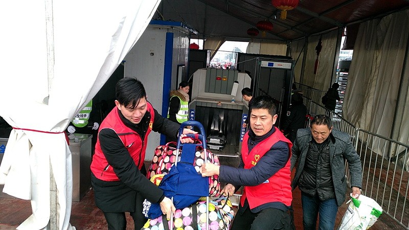潢川网2月13日讯 又是一年春运时,志愿服务暖人心。春节假期刚过,春运迎来返程高峰,为了缓解潢川县火车站进出站侯车压力,为返程的旅客提供便利的服务,潢川县政府办、团县委、文明办联合光州志愿者协会积极开展“情满旅途”志愿服务活动。