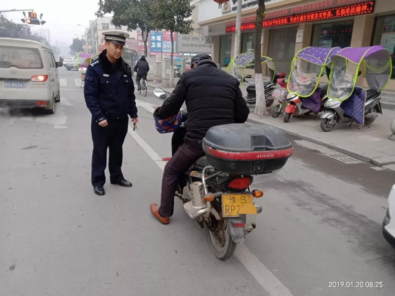 2019年1月20日,大队民警、辅警结合辖区实际,科学安排执勤路段,合理布控,强化网上网下联动。通过视频监控和现场巡查,加大对嫌疑车辆检查力度,采取城区重点路段定点纠查的执法方式严格执法,及时查获假牌套牌摩托车5起,其中假牌2起,套牌3起,实现及时拦截、快速核查、精准打击。