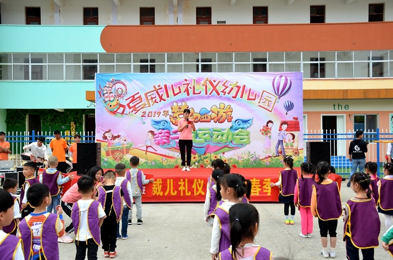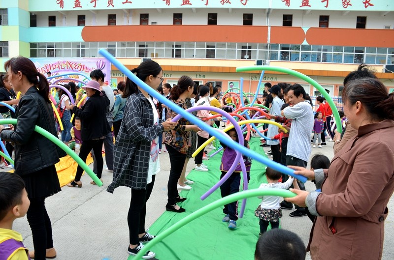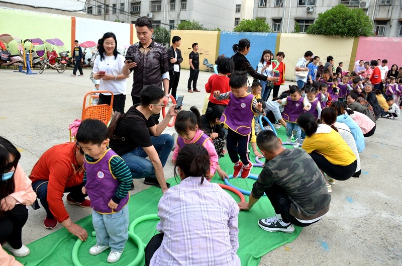 潢川网讯 为了充分调动孩子们参与体育活动的积极性,增进孩子与家长之间的亲子关系,促进幼儿园与家长之间的沟通与合作,达到家园共育的目的,5月5日下午,潢川县夏威儿礼仪幼儿园组织全园家长和幼儿在学校操场举行“梦幻西游”亲子运动会。