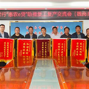 潢川网讯 4月16日上午,魏岗乡长胡明洋、县水产局副局长刘征携小龙虾养殖户代表来到潢川县农行,专程将十余面鲜红的锦旗交到农行行长冯逸辉手中,锦旗上面“关注民生解民难,惠农强农促和谐”表达了魏岗乡党委政府对农行信贷支持的肯定,更包含着养殖户最朴实的感谢之情。自去年10月以来,潢川县农行利用其新兴拳头产品“惠农E贷”,累计支持该乡龙虾养殖户337户,金额1910万元。尤其是今年疫情爆发后,为了不耽误养虾时机,农行客户经理在疫情期间又为106户养殖户办理贷款915万元,使得养殖户能及时购买饲料,有力地保障了养殖农户利益。