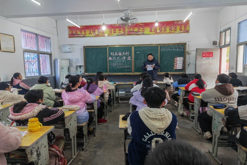 本网讯 为切实增强辖区青少年安全防范意识,提高自防自救能力,形成家庭、校园共防共治的合力,12月19日,潢川县付店镇组织镇应急办,平安办,基层治理法治小组、德治小组,妇联等相关部门,走进付店中心小学开展“付店镇乡村振兴大讲堂第四十九讲”——安全教育进校园系列宣传活动。