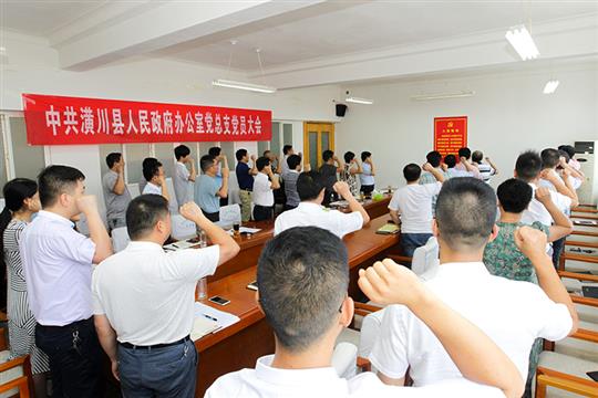 潢川县人民政府办公室党总支全体党员重温入党誓词 潢川网讯7月21日上午,中共潢川县人民政府办公室党总支党员大会在县政府三楼会议室召开。
