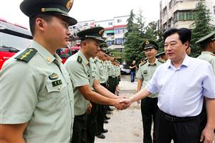 县领导慰问消防大队 潢川网讯7月27日上午,在“八一”建军节到来之际,潢川县领导赵亮、胡国平、涂白亮、陈旭东、徐宝才、罗先辉亲切看望慰问了驻潢部队官