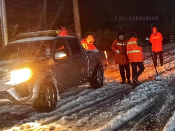本网讯 2月20日夜起,潢川县普降冻雨和大雪。按照领导安排,全县交通、公安、城管等部门连夜上路除雪保通行。