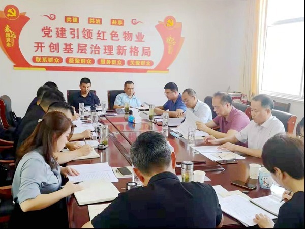 潢川网讯 9月23日,潢川县党建引领“红色物业”创建筹备会在县房产服务中心召开。县委组织部副部长夏日及县党建引领城市基层治理领导小组办公室成员、“四办两区红色物业”党总支书记出席会议。