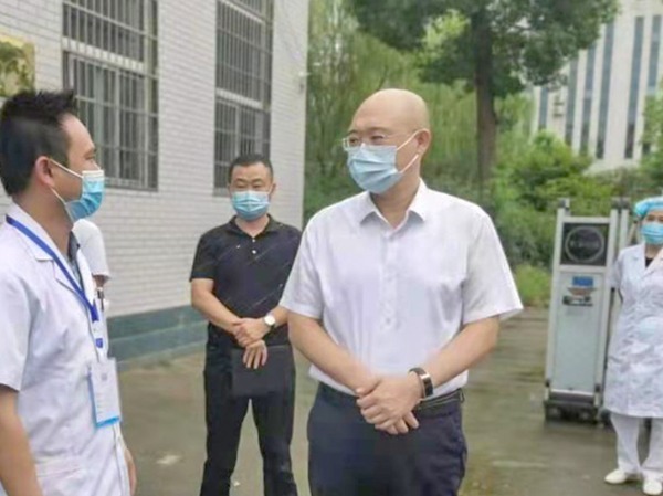 潢川网讯 8月9日下午,潢川县委书记赵军伟暗访督查我县疫情防控工作。赵军伟先后来到汽车站、农业银行天驹分行、明珠酒店、加油站、火车站及周边旅馆餐馆、宁和医院隔离点,实地查看了疫情防控措施落实情况,认真听取了相关单位汇报,看望了一线医护人员,并就发现的问题现场提出整改意见。