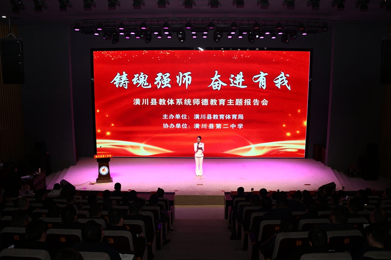 本网讯 为深入学习贯彻习近平总书记关于教育的重要论述,大力弘扬教育家精神,持续深化新时代师德师风建设,着力锻造高素质专业化教师队伍,2026年3月2日下午,“铸魂强师 奋进有我”潢川县教体系统师德教育主题报告会在二中西校区报告厅举行。县教体局全体班子成员、机关各股室长、二级机构党政负责人、联系乡校工作人员,全县各级各类学校(含民办学校)党政负责人、分管师德工作同志,以及信阳市第二实验小学、城关学校