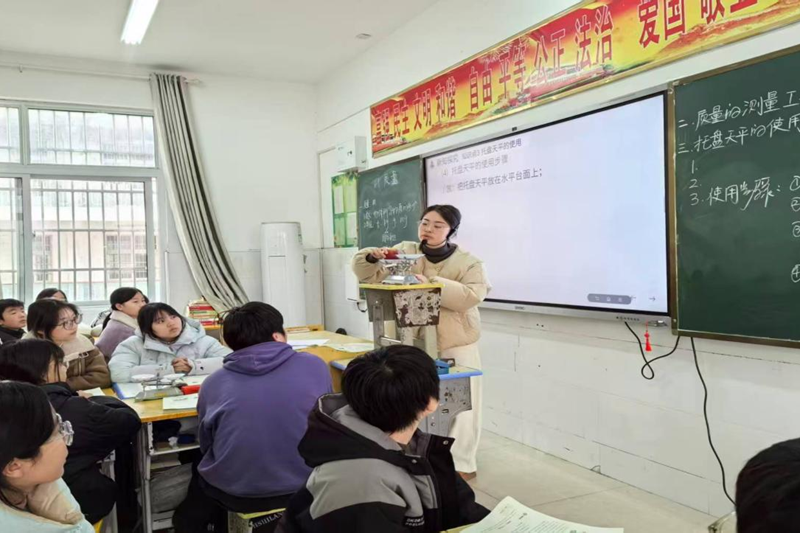 本网讯(严辉帆)为深化八年级物理学科教学质量提升,探索测量与物质性质教学的有效策略,2025年12月30日上午潢川县第三协作区以“《质量》高效课堂构建与研讨”为主题的物理教研“同课异构”活动在付店中学顺利开展。教研中心历史教研员胡俊、生物教研员高慧、物理教研员王庆龙及协作区各成员校业务领导、物理教师共计二十余人参与观摩研讨。