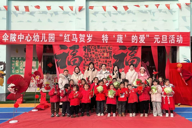 本网讯(张静)冬日暖阳,欢声满园。2025年12月30日为迎接新年的到来,营造欢乐喜庆的节日氛围,潢川县伞陂中心幼儿园于元旦前夕精心策划并举办了一场以“红马贺岁,特“蔬”的爱”为主题的趣味套圈活动。全体师幼齐聚一堂,通过丰富多彩的集体活动与趣味游戏,共同庆祝新年的到来,感受成长的喜悦。