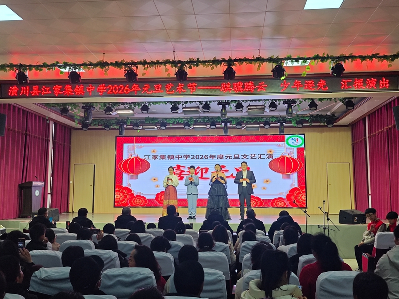 本网讯(高鸽)岁聿云暮,新元肇启。潢川县江集中学2026年“骐骥腾云,少年逐光”元旦晚会如期于2025年12月31日在学校报告厅举行,全体师生欢聚一堂,以多元节目辞旧迎新,共迎马年新春。
