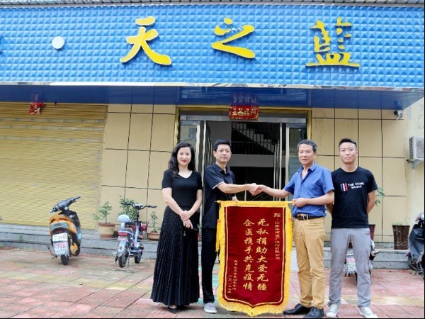 潢川网讯 为表达对爱心企业的感激之情,2021年7月19日下午,潢川县春申社区卫生服务中心副主任陈浩和县公之益志愿服协会副会长孙玲一行,前往江苏洋河酒业潢川经销处,把印有“无私捐助大爱无疆,企医携手共克疫情”的锦旗送给该企业负责人,共同表达对爱心企业的谢意。