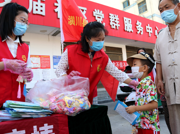 潢川网讯 “阿姨,谢谢您!”,一声稚嫩童声的传出,感染了现场的每一个人。这是连日来,潢川县群团和社会公益组织为预防新冠疫情,对城区尚未接种疫苗的3~15岁孩子免费发放中药香包,在文庙街道社区发放现场而出现的暖心一幕。