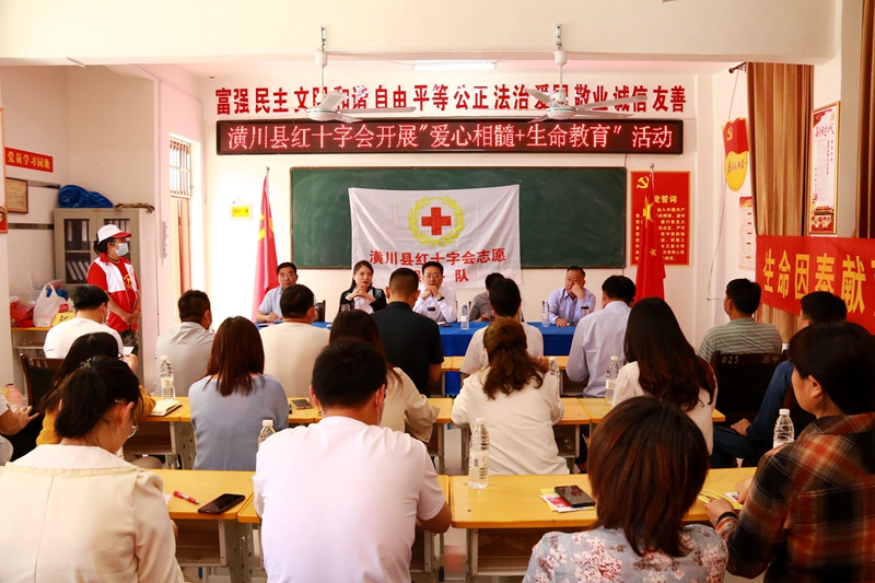 潢川网讯(熊永平 任恩光)为弘扬“人道、博爱、奉献”的红十字精神,给更多的血液病患者重燃生命希望,2022年5月5日值5·8博爱周来临之际,潢川县红十字会联合潢川县教体局、谈店乡及仁和镇政府、县公之益志愿服务协会、潢川县蓝天救援队和爱心企业--洋河股份驻潢川办事处的志愿者们,走进小吕店中学和仁和中心校、镇中心小学,共同开展造血干细胞捐献血样采集及应急救护知识培训和校园内疫情防控消杀活动。