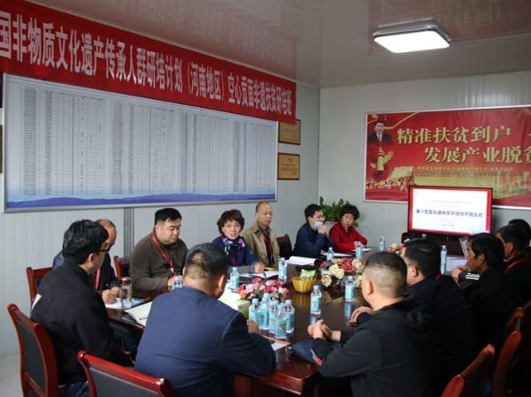 潢川网讯 2020年10月28日上午,由河南省文化和旅游厅主办,郑州轻工业大学承办的“中国非物质文化遗产传承人群研修研习培训计划·潢川贡面非遗扶贫研培班”在潢川县付店镇旺鑫空心贡面合作社正式开班。河南省文化和旅游厅非遗处副处长祝欣,信阳文化广电和旅游局非遗科科长王清丰,潢川县文化广电和旅游局副局长苏建宏,县文化馆副馆长刘国新,以及承办本次培训的郑州轻工业大学艺术设计学院院长曹阳、副院长薛峰,教师团
